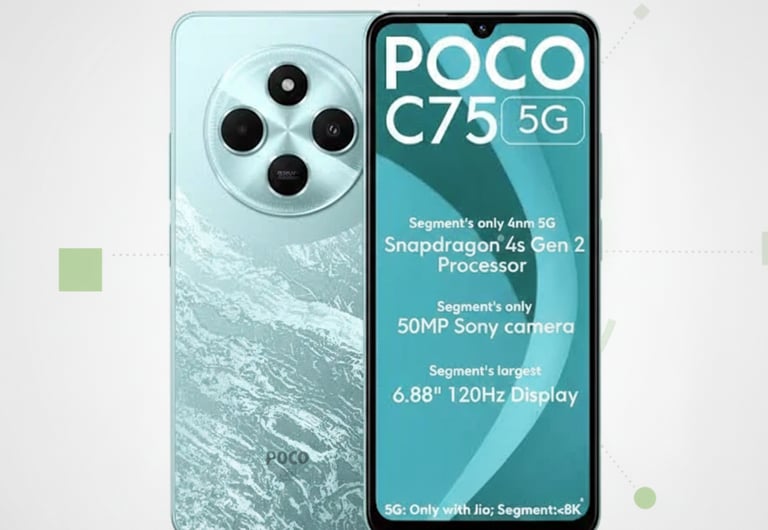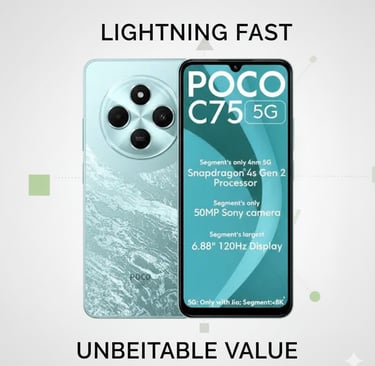 The Poc o C75 5G is one of the most balanced budget 5G phones under ₹10,000 in India. It offers reliable performance, a smooth user interface, and dependable battery life — making it ideal for everyday tasks, social media, and light gaming.